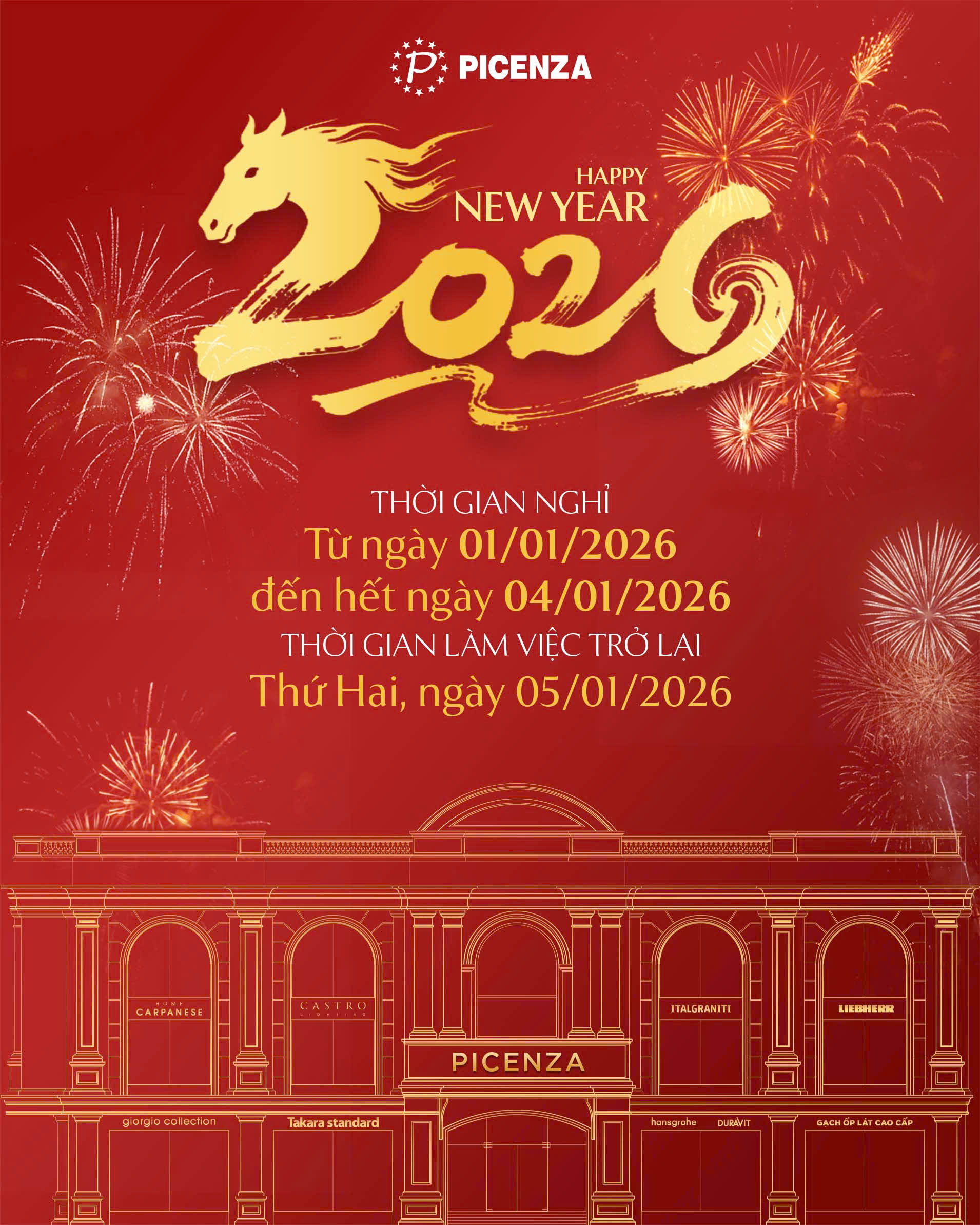 TẬP ĐOÀN PICENZA VIỆT NAM THÔNG BÁO LỊCH NGHỈ TẾT DƯƠNG LỊCH 2026